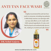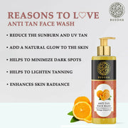 Buddha Natural Tan Face Wash is a rejuvenating skincare product that helps restore your skin's natural radiance. To use it effectively, start by wetting your face with lukewarm water. Take a small amount of the face wash and gently massage it onto your skin, using circular motions. Pay special attention to areas with tan or uneven pigmentation. Rinse off thoroughly with water, ensuring no residue remains. For best results, use twice daily, in the morning and evening. This face wash is with natural ingredients which help lighten the tan and brighten your complexion. Enjoy the refreshing scent and the nourishing properties of this face wash, as it leaves your skin feeling clean, fresh, and ready to take on the day.
