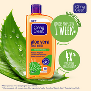 - Clean & Clear Aloe Vera face wash is specially designed for your young skin to reduce pimple causing germs from 1st wash. Enriched with aloe vera known to soothe skin and with fragrance designed to boost your happiness. It is gentle enough to use every day for clean and clear skin that glows.