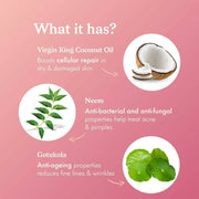 Coco Soul Face Wash is crafted with ancient Ayurvedic wisdom, the goodness of Virgin King Coconut Oil, and the magic of Gotukala and Neem! Coco Soul's Revitalizing Face Wash is your skin's new best friend as the ingredients used to create this natural face wash are derived from ayurvedic expertise and nature's most potent herbs. It cleanses dirt and other impurities from your face without making it dry. All in all, this natural face wash revitalizes your facial skin by giving it a fresh and radiant look.