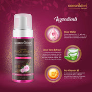 COROnation Herbal Pink Rose Foaming Face Wash is enriched with real rose petals and organic aloe vera, our extra-gentle face wash cleanses without leaving skin feeling tight, dry or stripped. All-in-one makeup remover and facial cleanser create a foamy fragrance that helps remove makeup that leaves skin feeling soft, soothed, and replenished.