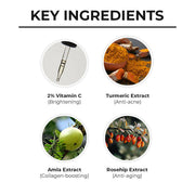 - Rosehip Extract, Amla Extract, Turmeric Extract, 2% Vitamin C, and More