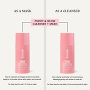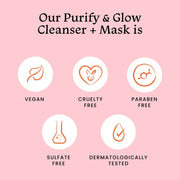 - DUAL EXFOLIATION: This cleanser doubles up as a face mask to give you the benefits of both purification and exfoliation so you can get clear skin. The Purify & Glow Cleanser + Mask works wonders to give you a renewed, long-lasting glow too.