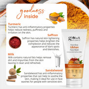 Globus Naturals Pure Glow Ubtan Face Wash is a natural and gentle face wash that is suitable for all skin types. Enriched with the goodness of saffron and milk, it helps in enhancing the radiance and glow of the skin. This face wash is free from harsh chemicals, parabens, sulfatesand artificial fragrances, making it safe and mild for everyday use. It comes in a convenient 75 gm packaging, which makes it travel-friendly and easy to use.