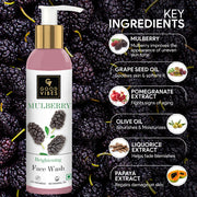 Good Vibes Mulberry Face Wash is the perfect mild cleanser for gentle cleansing and beautiful skin that glows like the sun! Mulberry is known for its skin-brightening properties. It contains a natural skin-brightening agent called Riboflavin which fades away dark spots and improves the complexion, making the skin glow even more. Mulberry is also extremely rich in Vitamin A, E, and C, which helps pigmentation and evens the skin tone. All this goodness present in this face wash works wonders to leave behind beautifully radiant and glowing skin.