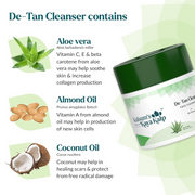 • D-tan facial cleanser removes tan, and excessive oil leaving the skin lighter, radiant, and even toned. The presence of aloe vera helps in treating sunburn and skin tan. The d-tan cleanser contains lots of anti-oxidants that improve the natural firmness of the skin. Almond oil makes the skin healthier and removes impurities and tan from the skin. This cleanser is best suitable for oily skin.
