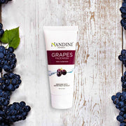 - Nandini's grape face wash is made from pure grape extract to give you smooth and glowing skin. It contains proanthocyanidins, vitamin-e, as well as other powerful antioxidants which helps to retain moisture in the skin, help reduce redness, and damage to the skin & gives even skin tone.