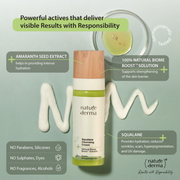 Nature Derma's Squalane Cleansing Cream is a soap-free formula that helps dissolve makeup, excess oil, and grime. It contains squalane, amaranth seed extract, and Natural Biome Boost Solution that aims to leave the skin feeling clean but not dry or stripped. Squalane helps recreate the skin’s natural hydrating oils to provide moisture and deliver active ingredients deep into the skin to prevent over-drying. This essential ingredient has the potential to reduce wrinkles, fade scars and hyperpigmentation, reduce UV damage, and fight free radicals over time.