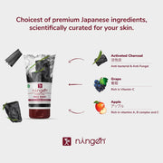 - Ningen Charcoal Face Wash contains activated Charcoal, Grape and Apple extract which effectively removes dirt, oil, toxins and impurities from your skin to make it smoother and healthier