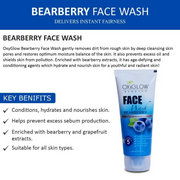 - OxyGlow Bearberry Face Wash gently removes dirt from rough skin by deep cleansing skin pores and restores optimum moisture balance of the skin. It also prevents excess oil and shields skin from pollution. Enriched with bearberry extracts, it has age-defying and conditioning agents which hydrate and nourish skin for a youthful and radiant skin!