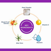 - Pearl Powder: Active mineral agent with antioxidants, stimulate regeneration of collagen and increases elasticity. It also helps maintain oil balance. Leaves behind a rejuvenated and brighter looking skin.