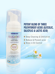 - Rejuglow-L Foaming Facewash is an effective gentle cleanser with triple combination of active exfoliants (Glycolic, Salicylic & Lactic Acid), fortified with Vitamin E, Aloe Vera and Witch Hazel Extract to impart an instant glow on the face.