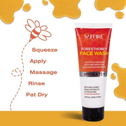 Saffire Natural's Forest Honey Nourishing Facewash is a skincare product designed to provide oil-free and glowing skin. Enriched with wild honey, peach extracts, and lemon peel, this facewash offers a blend of natural ingredients known for their beneficial properties. The wild honey helps moisturize and nourish the skin, while peach extracts contribute vitamins and antioxidants that promote skin vitality. Lemon peel, rich in citric acid, aids in exfoliation and brightening of the skin.