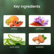 - Papaya-Saffron Face Wash purifies the skin pores and makes the skin appear flawlessly beautiful. It helps in improving skin quality and imparts even tone. Infused with natural plant extracts. It contains Extracts of Papaya, Saffron, Lemon, Aloe Vera, Cucumber, Pumpkin, Rose, Coconut and Almond.