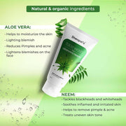 Aloe vera Neem Facewash is an herbal facewash that is made with natural ingredients such as aloe vera, neem, liquorice, and niacinamide. It helps to cleanse, nourish and hydrate the skin. Aloe vera helps to soothe and moisturize the skin while neem helps to fight bacteria and reduce inflammation. It also has liquorice in it which contains antioxidants that helps protect the skin from environmental stressors and diminishes the appearance of blemishes.