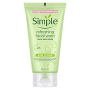 - Simple Kind To Skin Refreshing Facial Wash thoroughly washes away make-up, dirt, and other impurities leaving skin feeling clean, fresh and revived.