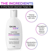 • SkinLuv Purifying Facial Cleanser cleanses without irritation to leave your skin soft and smooth. In this mind, the soap-free formula works as a face wash and makeup remover to remove dirt, makeup, and impurities and also helps to retain skin moisture.