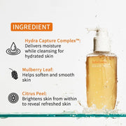- Gently massage two pumps onto damp skin morning and night to thoroughly remove makeup, debris, and pollution.