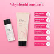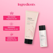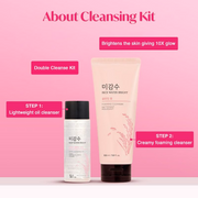 • The 2-Step Rice Water Bright Cleansing Kit is a double cleanse set that melts away waterproof makeup and impurities, leaving the skin feeling clean, refreshed, and hydrated. This duo works perfectly alone or together for the ultimate deep-clean.