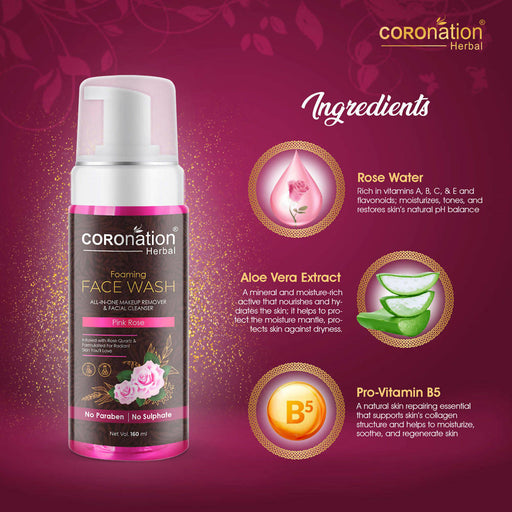 Coronation Herbal Pink Rose Foaming Face WashCOROnation Herbal Pink Rose Foaming Face Wash is enriched with real rose petals and organic aloe vera,...