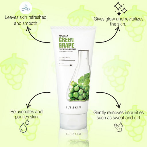It's Skin Have A Green Grape Cleansing Foam About This Product: It's Skin Have a Green Grape Cleansing Foam is a rich foaming face cleanser enrich...