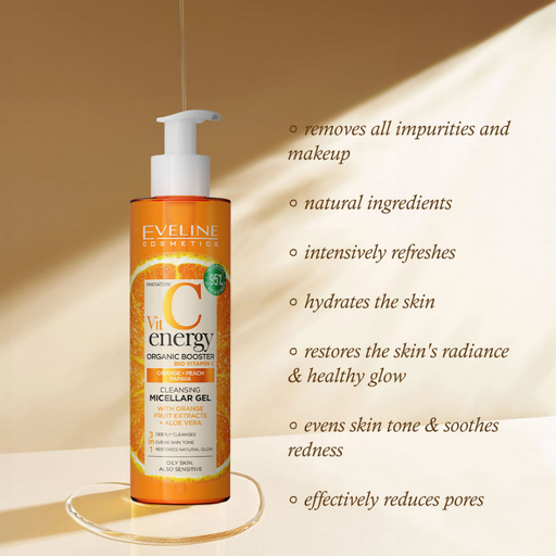 Eveline Cosmetics Vit C Energy Organic Booster Cleansing Micellar Gel About The Product: Experience the amazing power of CLEANSING MICELLAR GEL bas...