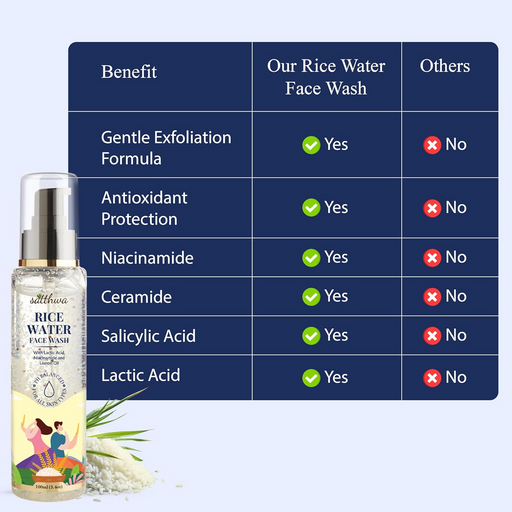 View full detailsSatthwa Rice Water Face Wash With Niacinamide, Lactic Acid & 1% Salicylic Acid
