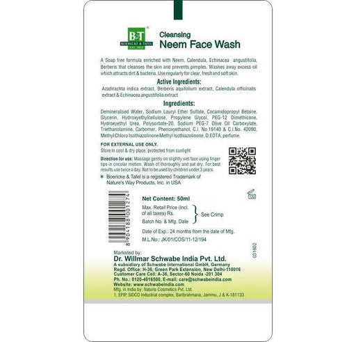 Boericke & Tafel Cleansing Neem Face Wash Contains: Neem + Calendula + Echinacea + Berberis How to use: Massage gently on a slightly wet fac...