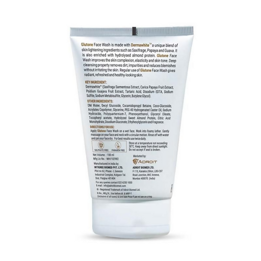 Glutone - Skin Brightening & Glowing - Facewash & Serum Combo This combo contains:Glutone Face Wash With Dermawhite: 100 mlGlutone Skin Li...