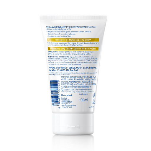 Nivea Luminous Even Glow Face Wash Description: Get instant, radiant skin with new Luminous Even Glow Face wash. Face wash contains key ingredient...