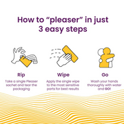 • Tear open the Pleaser sachet, gently apply to the desired area after waking up, wait for 2 minutes , and enjoy a clean,confident & fresh feeling