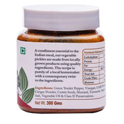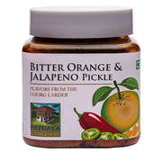 Ainmane Bitter Orange & Jalapeno Pickle is a flavorful condiment crafted from locally sourced ingredients, reflecting a traditional recipe with a modern touch. Made using bitter orange (Citrus aurantium), a unique sour orange grown sparingly among Coorg’s coffee plantations, this pickle supports local communities and cooperative societies. Produced in collaboration with the Orange Society of Coorg, it combines green tender pepper, vinegar, ginger powder, turmeric, cumin seeds, mustard, vegetable oil, sugar, and chili powder to deliver a balanced, tangy, and spicy accompaniment that enhances any Indian meal.