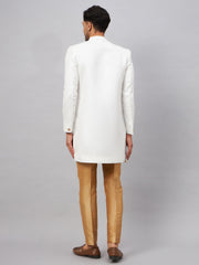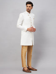 White Solid Sherwani With rose gold Solid Pant style pyjama set.