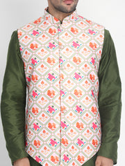 VASTRAMAY Men's Pink Silk Blend Ethnic Jacket