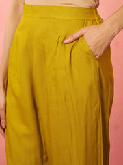 Women's Mehendi Green Rayon Mirror Work Kurta Set with Palazzo