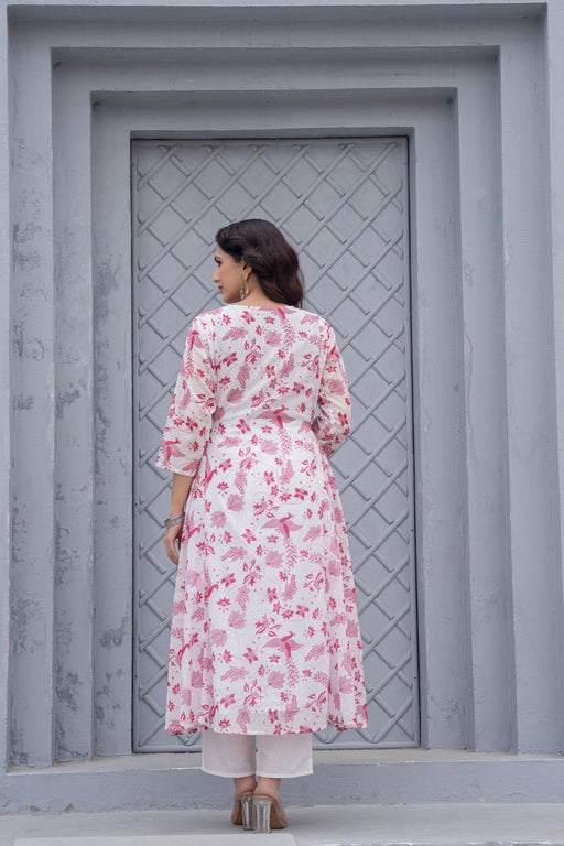Juniper White & Pink Floral Printed Cotton Kurta Set With Thread & Mirror WorkProduct Details:White & Pink Floral Printed Cotton Kurta ...