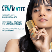 Flawless matte meets all day hydration. Introducing the new Lakmē Hya Matte Foundation + Hyaluronic Acid, an innovative formula that delivers fresh matte complexion while hydrating skin from within. This unique formula, enriched with a 5% Hyaluronic Acid Complex and Hydra-flex Technology, provides intense hydration and keeps your skin nourished and supple all day long. This breathable, hydrating matte lasts up to 12 hours without feeling dry or cakey. The Lakmē 9to5 Hya Matte Foundation goes beyond any other foundation. 100% people agree that this gives skin a plumper appearance while instantly mattifying excess shine.