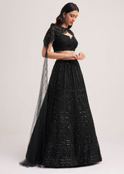 Black Sequin Embellished Lehenga Choli Set With Cape