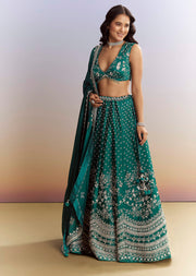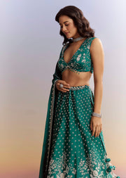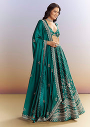 Bottle Green Satin Bridesmaid Lehenga With Heavy Embroidery
