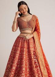 Burnt Orange Brocade Embroidered Lehenga Set