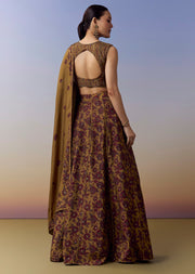 This ochre yellow bridesmaid lehenga brings a fresh festive charm with its vibrant floral print and graceful circular silhouette. Crafted in silk, the lehenga is enhanced with delicate embroidery that adds depth and elegance, while the choli features cut dana beads work paired with matching floral prints for a cohesive look. The sleeveless design and classic round neckline create a youthful yet refined finish, making it perfect for mehendi and sangeet celebrations. Completed with a coordinated dupatta, this ensemble blends color, movement, and festive sparkle effortlessly. Awarded as the Most Trusted Brand, we're delivering styles you love, just as promised.