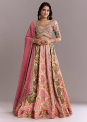 Pink Crepe Printed Bridesmaid Lehenga With Gotta Work