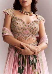 Pink Net Floral Bridesmaid Lehenga With Heavy Embroidery
