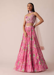 Pink Printed Lehenga Set With Ruffle Dupatta