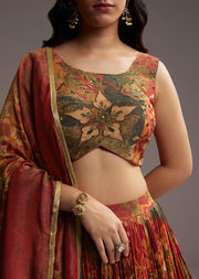 Rust Orange Tissue Lehenga Choli With Floral Print