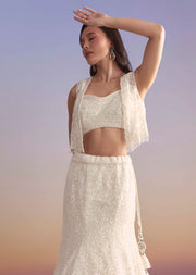 White Net Bridesmaid Lehenga With Sequins Work And Embellished Jacket
