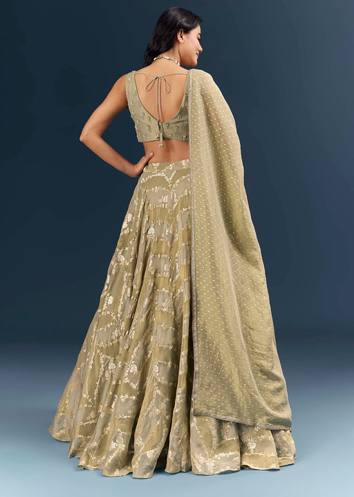 View full detailsCitrus Green Banarasi Silk Bridesmaid Lehenga With Intricate Hand Embroidery