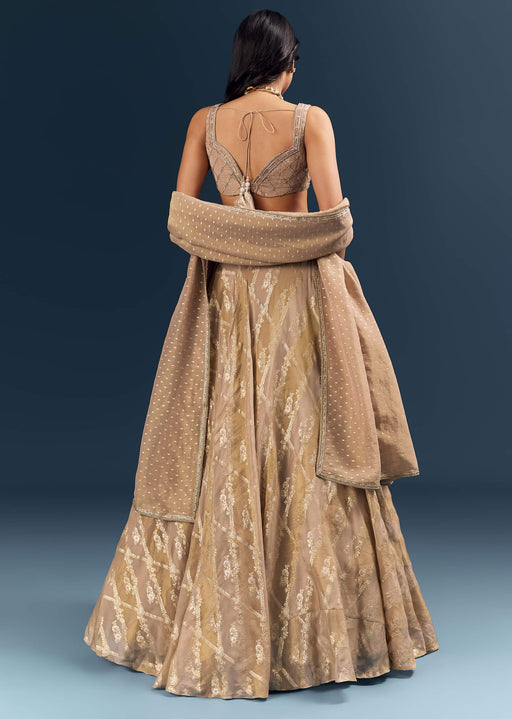 View full detailsCopper Banarasi Silk Bridesmaid Lehenga With Heavy Hand Embroidery