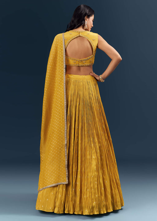 View full detailsMustard Yellow Banarasi Silk Bridesmaid Lehenga With Intricate Hand Embroidery