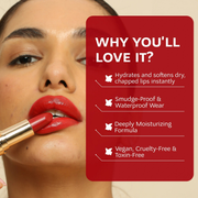 • Radiant and Captivating – Shine bright with Dona, a red satin lipstick that adds a dazzling sheen to your lips. Its vibrant color is perfect for special occasions or date nights. Enriched with nourishing ingredients, it keeps your lips soft all day.