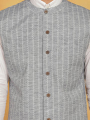 Cotton self design Jacket regular Nehru jacket, has a mandarin collar, sleeveless,button clouser, a welt pocket.